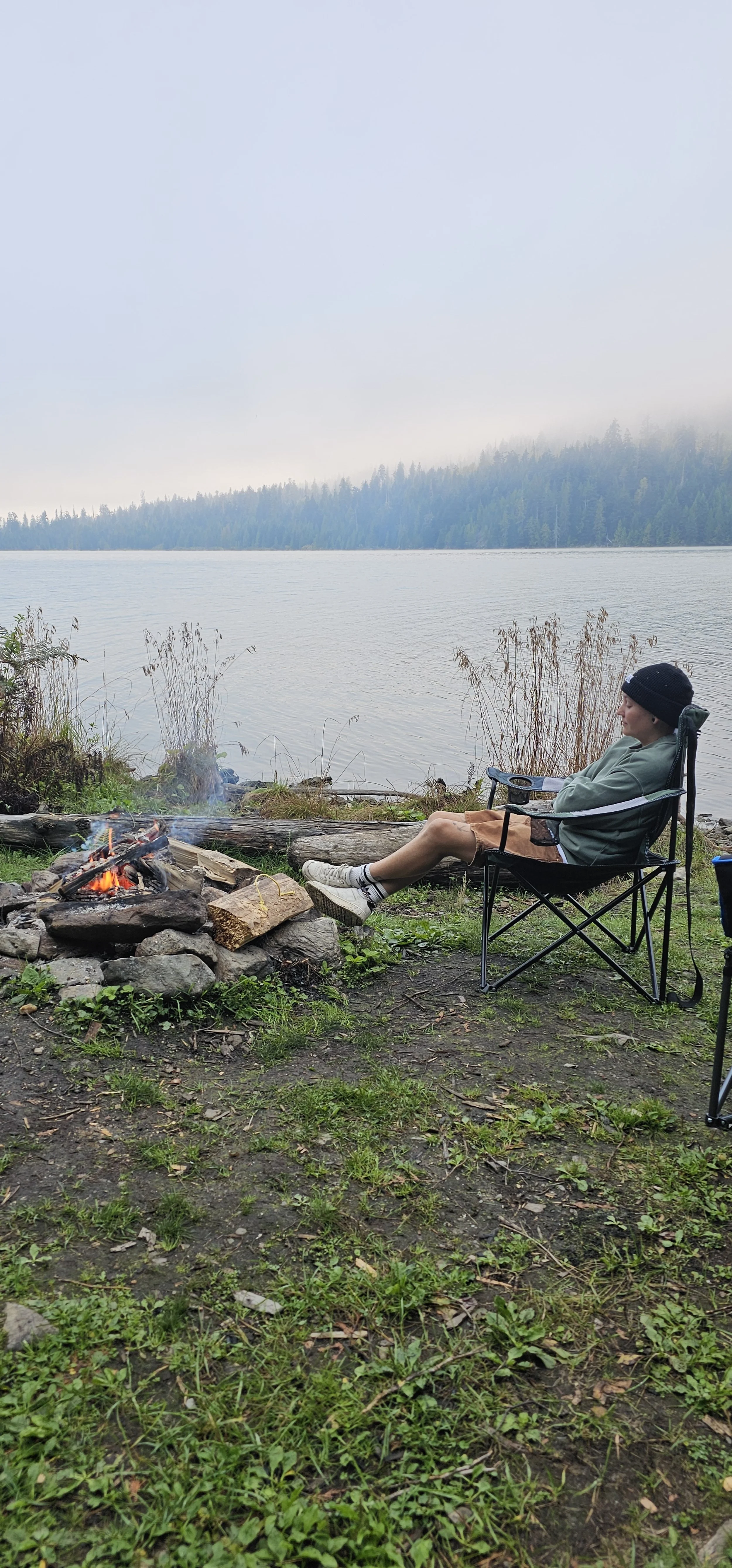 Dan had a real treat for us the next day. We were off camping!! Proper… in the wild… Canadian camping! He and Ruth had found a spot last summer right by a lake, with a perfectly flat area to pitch a tent. It was better than I could have ever imagined. It was as if there was a bedroom with space for two tents, and a living room area with a great big fire pit waiting for us to sit around for the rest of the night. The lake was absolutely serene, and we were all looking forward to getting the paddleboards out the next day when it was light.