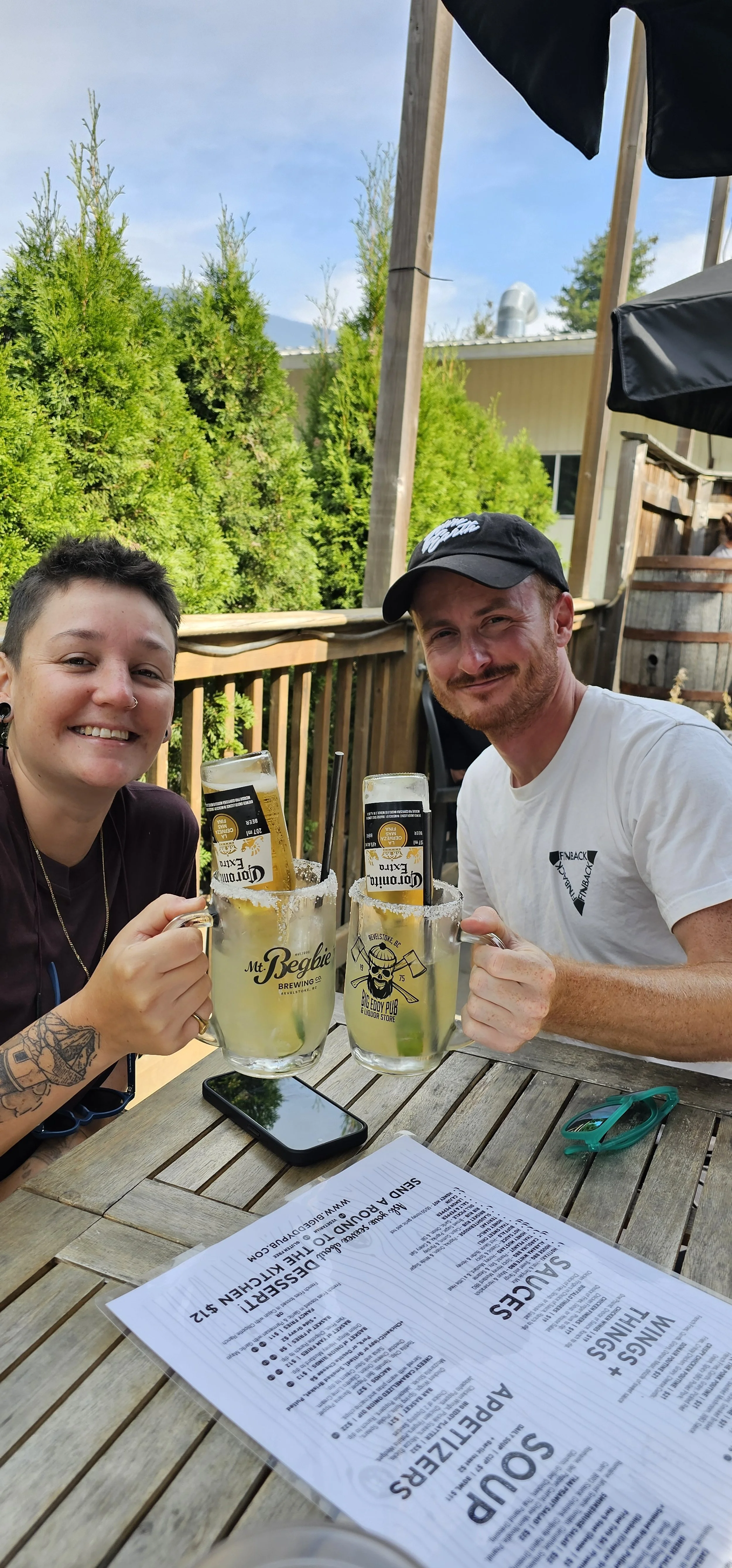 After sufficiently distracting Ruth at work, we set off on our merry way back into town. It seems like a walk to town isn’t complete without a pitstop at Big Eddy Pub! Here, they have their own take on the classic Canadian Caesar - aptly named Big Eddy Caesar. It came with a pepperoni stick in it, of which Dan had to eat mine and Tora’s, being the boring veggies we are, but the drink itself was soooooooooo good! We sat sipping those in the sun, while we caught up on all sorts of life events that have been happening since Dan and Tor last saw each other, before then making our way further into town for some beers at one of Dan’s favourite breweries.
